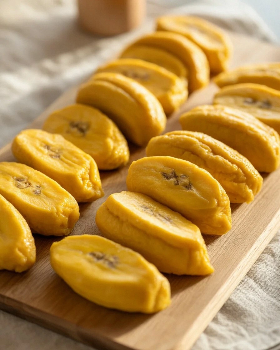 After removing the plantains, let them rest on a rack for 3 to 5 minutes. This short pause lets the steam escape, preventing the edges from becoming soggy. It also allows the interior to settle, so the sweet center stays tender while the exterior remains crisp.