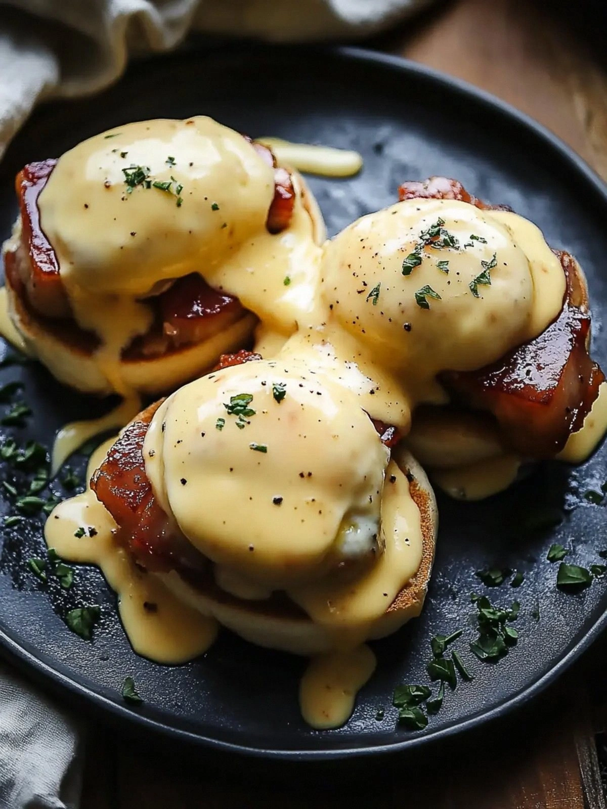 - Make‑Ahead: The pork can be prepared a day ahead, the hollandaise can be reheated, and the eggs can be poached right before serving.
